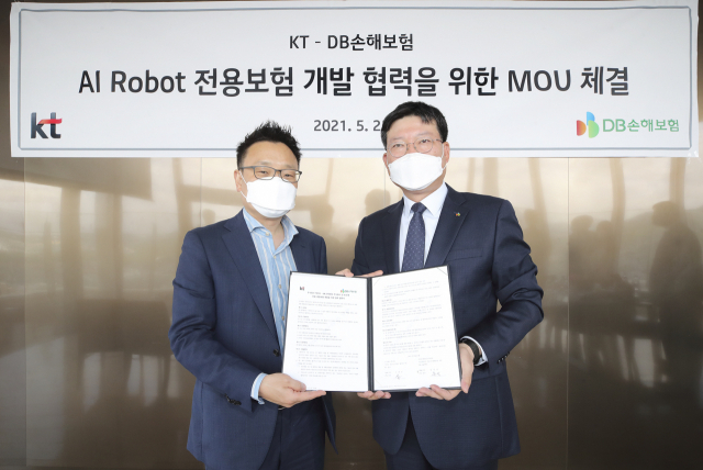 KT와 DB손해보험은 서비스 로봇 시장 활성화를 위해 최초로 AI 서비스 로봇 전용 보험을 개발하기로 했다.