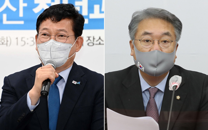 ▲ 더불어민주당 송영길 대표(왼쪽), 국민의힘 정진석 의원 [뉴시스]