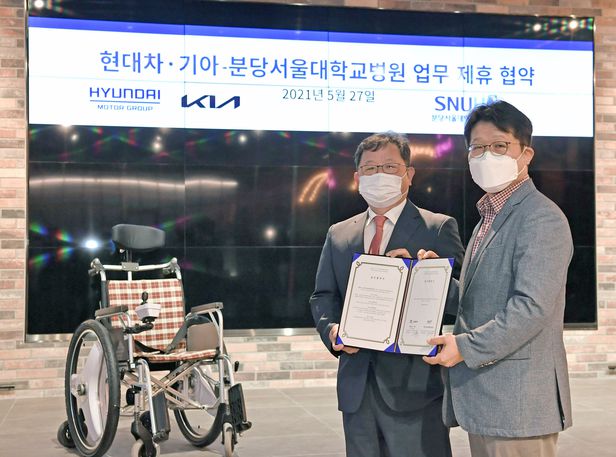 현대차·기아는 27일 현대차그룹 창의인재 플랫폼인 제로원에서 서울시립미술관, 분당서울대병원과 양해각서(MOU)를 맺고 자율주행 휠체어 개발·실증에 협력하기로 했다고 밝혔다.