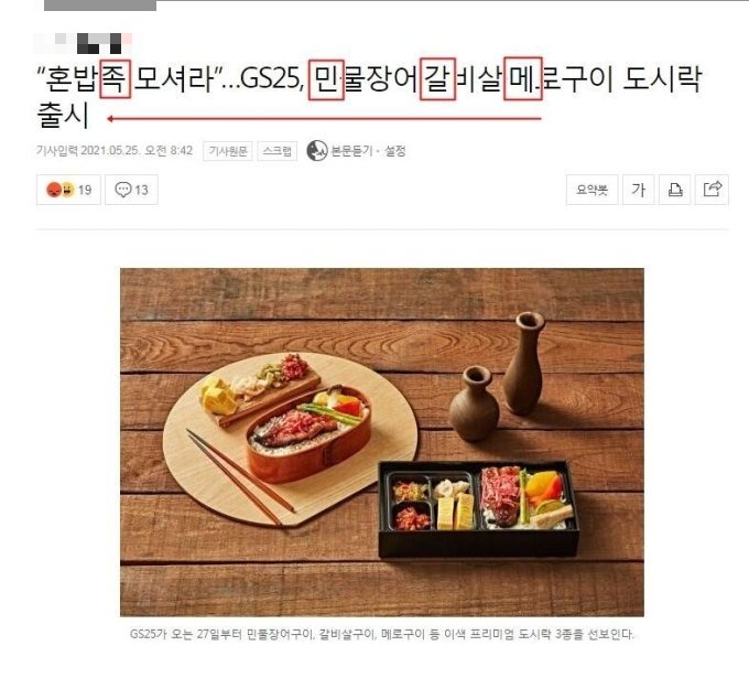 각종 온라인 커뮤니티에는 새로 출시되는 GS25 도시락 기사에 제목을 반대로 읽어보게끔 표시한 사진이 게재됐다. 글쓴이의 표시에 따르면 '메갈민족'이라는 글씨를 확인할 수 있다.