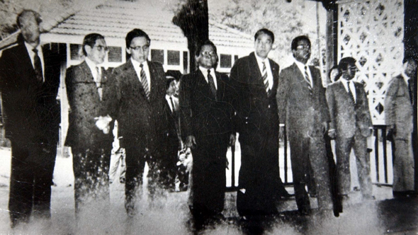 ▲ 1983년 10월 9일 폭탄테러 직전에 아웅산 묘역에서 전두환 대통령의 입장을 기다리고 있는 수행장관들의 마지막 모습. 아웅산 테러 사건을 계기로 군은 대북 응징∙보복 계획인 '330계획'을 수립했다.