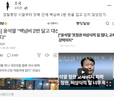 조국, 윤석열에 "총장때부터 백넘버 2번 옷 입어"