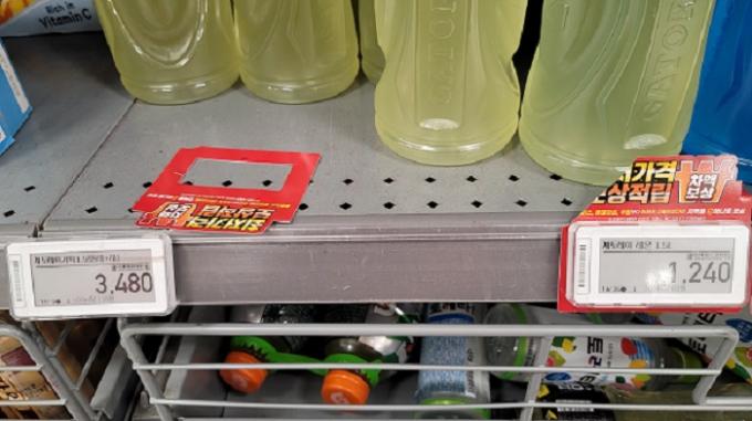 직장인 A씨는 이마트 매장에서 지난 5월 말 한 음료 1.5L 짜리 2개 묶음 상품은 3480원, 낱개로 된 동일 상품은 1240원으로 기재된 채 나란히 진열돼 있는 것을 발견했다. 두 상품 모두 '최저 가격 보상적립제' 해당 상품이었다.