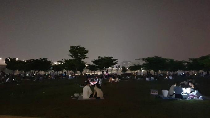 오후 10시가 지나자 가족단위 시민들은 점차 사라지고 그 자리를 20대 청춘남녀들이 채웠다. 인근 음식점과 술집에서 1차를 마친 이들이 10시 영업 마감을 피해 한강으로 몰려든 것이다.