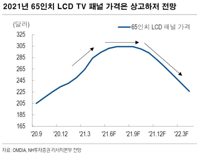 고정우 NH투자증권 연구원은 "향후 LCD 패널 가격 하락에 따라 LCD TV 수익성이 개선될 것"이라며 "올레드(OLED·유기발광다이오드) TV와 미니(Mini) LED TV 판매 라인업 확대로 LG전자의 TV 사업 성장성과 수익성이 동반 개선될 것"이라고 전망했다. 미니 LED TV란 백라이트에 들어가는 LED 크기를 줄인 TV를 일컫는다.
