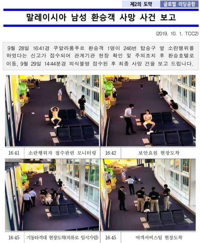 ▲인천공항공사가 지난 2019년 작성한 '말레이시아 남성 환승객 사망 사건 보고' 문건.[독자 제공]