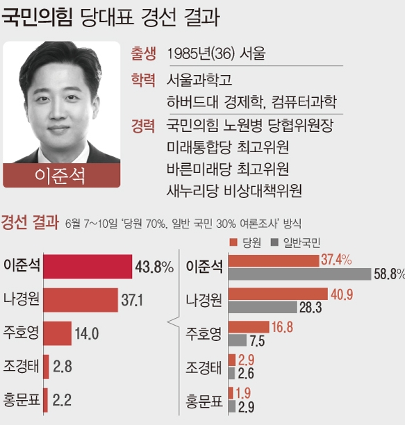 국민의힘은 당권 경쟁에서 '세대 교체' 바람을 일으킨 이준석 후보를 새 당대표에 앉혔다. 안정·경륜보다 변화·쇄신을 택한 것이다.