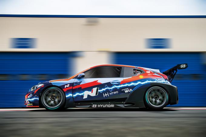 ▲ 'PURE ETCR(Electric Touring Car Racing)' 개막전에 출전하는 현대차 벨로스터 N ETCR의 모습. [현대차 제공]