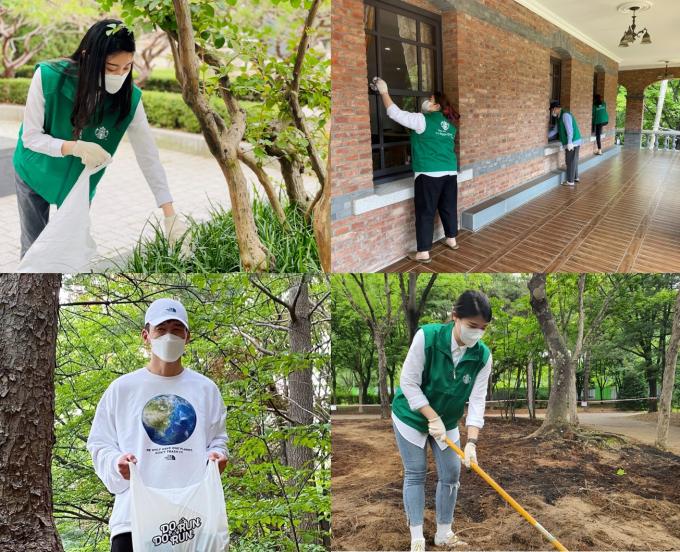 ▲ 스타벅스 파트너들과 가수 션(왼쪽 아래)이 다양한 방식으로 비대면 봉사활동을 진행하고 있다. [스타벅스코리아 제공]