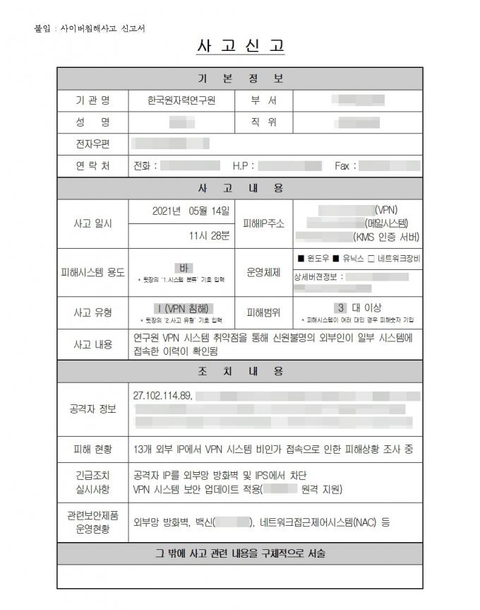 원자력연구소는 원전과 핵연료 원천 기술 등을 보유한 국가 핵심 시설이다. 국가정보원은 구체적인 피해 규모와 배후 세력에 대해 조사하고 있는 것으로 알려졌다.