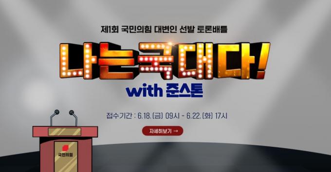 토론배틀 타이틀은 '나는 국대다 with 준스톤'으로 정해졌다. '국대'는 '국민의힘 대변인'의 줄임말, '준스톤'은 인터넷 커뮤니티 등에서 칭하는 이준석 대표를 칭하는 이름이다. '나는 국대다'는 예능 프로그램 '나는 가수다'의 서바이벌 형식을 차용했다. 참가자 모집기간은 오는 22일 오후 5시까지다.