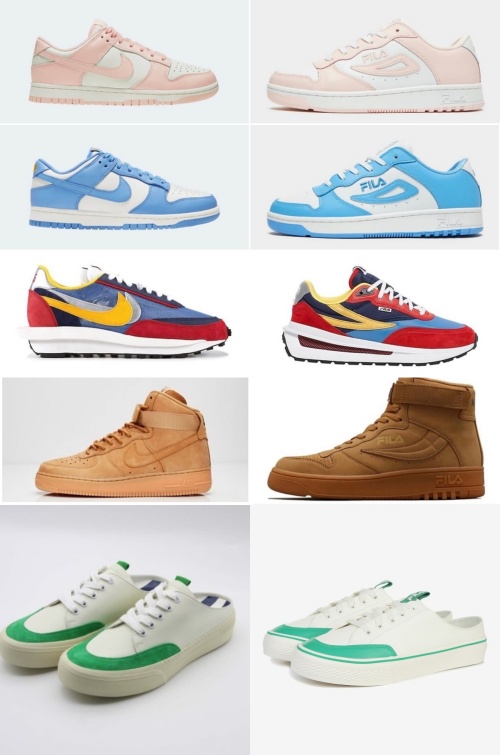 ▲ 나이키·써네이 등 타사 제품(왼쪽)과 휠라 제품 이미지 [온라인 커뮤니티 갈무리]