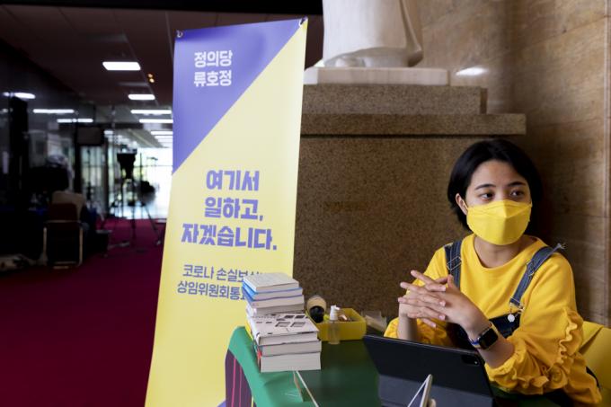 그러나 노동문제 해결을 위해 갈 길은 여전히 멀었다. 국회 안에서 또 다른 한계를 마주했기 때문이다. 비교섭단체인 정의당의 의원으로서는 모든 법안을 빠르게 통과시킬 수 없었다. 그래서 '국민'에게 직접 호소하기 시작했다. 류 의원과 정의당이 퍼포먼스를 자주 하게 된 이유다. 23일 국회 본관 '코로나 손실보상법 처리 촉구 농성장'에서 그를 만났다.