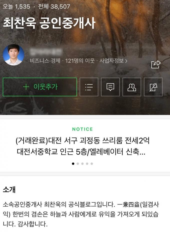 그가 운영하던 공인중개사 블로그에는 '일겸사익(一謙四益), 한 번의 겸손은 하늘과 사람에게로 유익을 가져오게 돼 있습니다'라고 적혀있다.