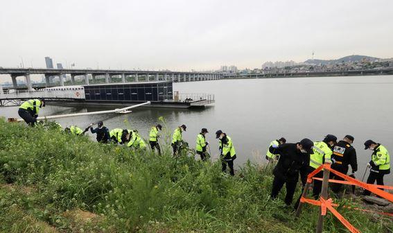 ▲ 지난 5월 10일 서울 서초구 반포한강공원 수상택시 승강장 앞에서 경찰이 고(故) 손정민 군의 친구 휴대전화 수색 작업을 하고 있다. [뉴시스]