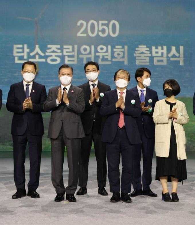 '2050 탄소중립위원회'는 탄소중립 사회로 나아가기 위한 정책과 계획을 수립하는 대통령 직속기구다. 국무총리와 중앙 18개 부처 장관, 시민사회 등 각계를 대표하는 민간위원 77명을 포함한 97명의 위원으로 구성돼 있다.