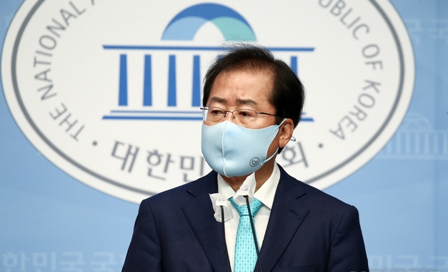 ▲ 홍준표 의원이 지난달 24일 국민의힘 복당이 결정된 뒤 서울 여의도 국회 소통관에서 기자회견을 하고 있다. [뉴시스]