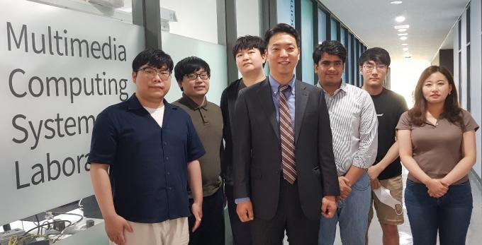 ▲ 성균관대 멀티미디어 컴퓨팅 시스템 연구실(MCSL·Multimedia Computing Systems Laboratory) 사람들. MCSL을 이끌고 있는 류은석(가운데) 성균관대 컴퓨터교육학과 교수를 비롯한 석·박사 연구원. [박일경 기자]