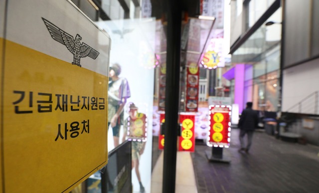 ▲ 서울 중구 명동의 한 상점에 긴급재난지원금 사용 가능 안내문이 붙어있는 모습. [뉴시스]