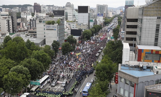 민주노총은 지난 3일 서울 종로 일대에서 약 8000명이 참여한 대규모 집회를 열었다. 당초 집회는 여의도에서 열릴 예정이었으나, 경찰이 여의도 일대를 원천 봉쇄하자 장소가 변경됐다. 현재 서울에서는 10인 이상 집회가 금지돼 있다.