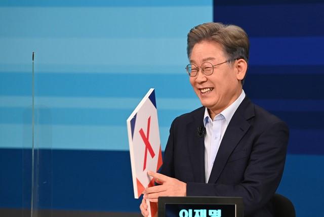 ▲ 더불어민주당 이재명 대선 경선 예비후보가 5일 서울 마포구 JTBC 스튜디오에서 열린 TV 토론회 리허설을 하고 있다. [뉴시스]
