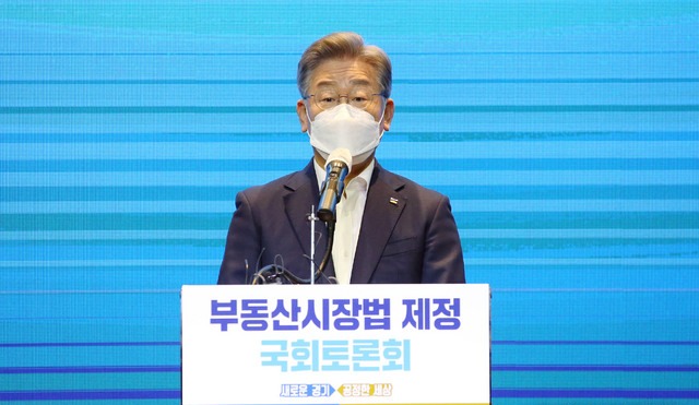 ▲ 이재명 경기지사가 6일 서울 여의도 글래드호텔에서 열린 '부동산시장법 제정 국회토론회'에 참석해 인사말을 하고 있다. [뉴시스]