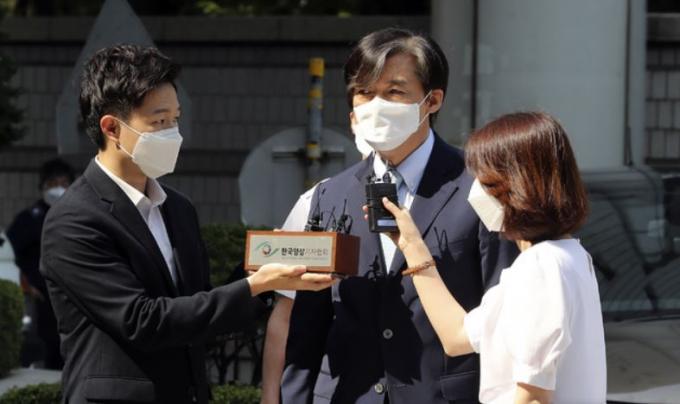 ▲ 조국 전 법무부 장관이 지난달 25일 서울 서초구 서울중앙지법에서 열린 '자녀 입시비리 혐의' 관련 공판에 출석하며 취재진 질문에 답하고 있다. [뉴시스]