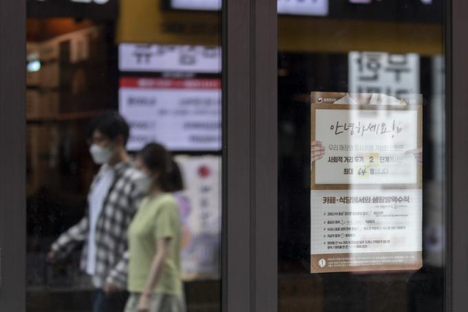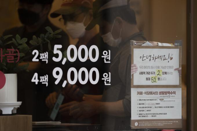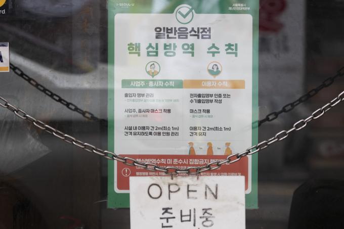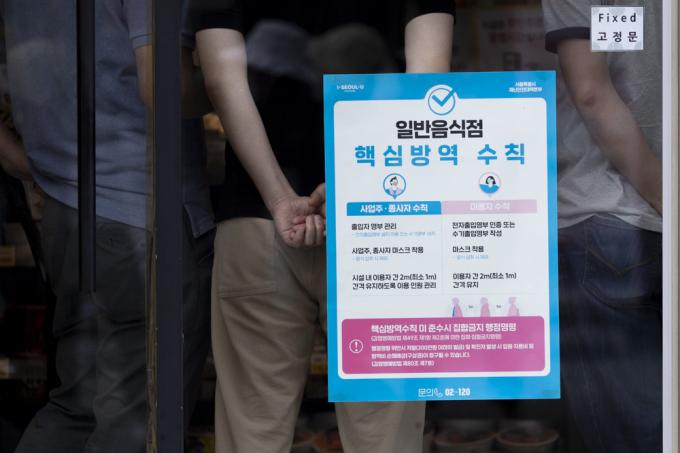 코로나19 '원스트라이크 아웃제' 시행 첫날인 8일 서울 시내의 한 음식점에 '방역 수칙 안내문'이 붙어 있다.