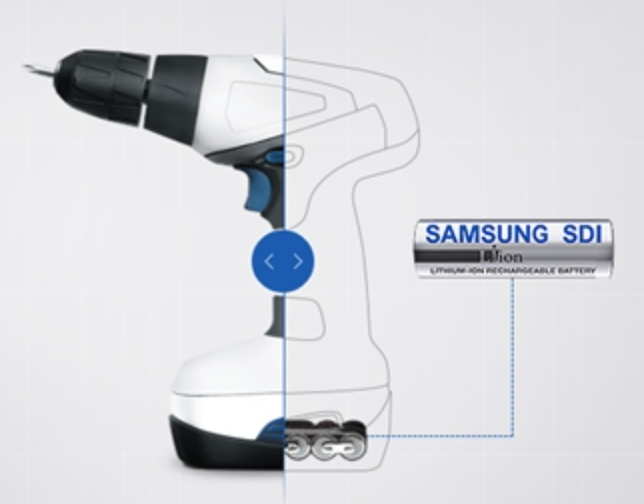 ▲ 전동공구에 탑재된 삼성SDI의 고출력 배터리의 모습. [삼성SDI 제공]