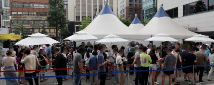 ▲ 지난 9일 오후 서울 강남구보건소 선별진료소에서 시민들이 코로나19 검사를 받기 위해 길게 줄 지어 서 있다. [뉴시스]