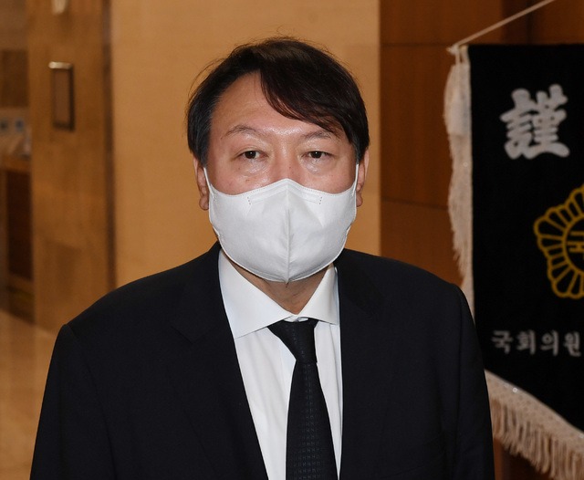 ▲ 윤석열 전 검찰총장이 지난 8일 서울 서대문구 신촌세브란스병원 장례식장에서 부친상을 당한 최재형 전 감사원장을 조문한 뒤 취재진 질문에 답하고 있다. [뉴시스]