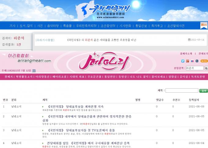 하지만 12일 현재 남북한 및 해외동포 소식을 전하는 북한의 대표적 대남∙대외 선전매체인 우리민족끼리∙메아리∙통일의 메아리(인터넷판)에 우회접속해 '리준석'으로 검색해보면, 국민의힘 전당대회 기간의 기사만 검색될 뿐이고 전대 결과를 보도한 기사는 단 한 건도 찾을 수 없다.