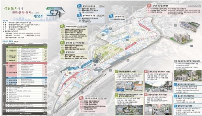 대한석탄공사, LH 등 공공기관과 함께 도시재생 뉴딜 공모사업에 도전해 지난해 12월 최종 선정, 핵심사업(마중물사업)에 국비 150억 원을 포함 총 265억 원을 투자하게 됐다. 여기에 LH 투자사업, 지자체 사업을 포함하면 2025년까지 총사업비 916억 원을 투입할 계획이다.