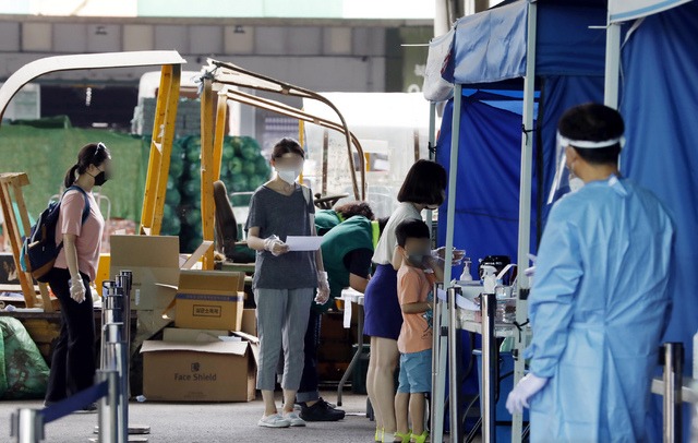 ▲ 14일 서울 가락농수산물종합도매시장 내 '서울시 찾아가는 선별진료소'에서 시민들이 코로나19 검사를 받기 위해 기다리고 있다. [뉴시스]