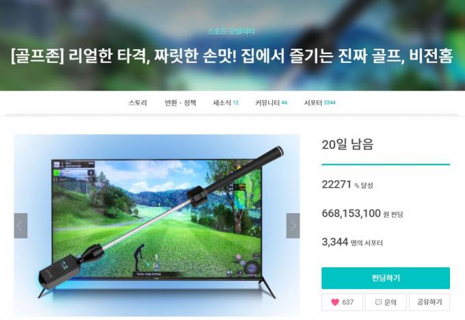 ▲펀딩에도 '골린이' 몰린다…와디즈, 골프 시뮬레이터 7일만에 '6억6천' 훌쩍