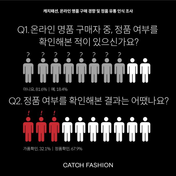 캐치패션(대표 이우창)이 7월 20~49세 성인남녀 1000명 대상으로 진행한 '온라인 명품 구매자 정품 유통 인식 조사'에 따르면 정품 여부를 확인 소비자는 18.4%였다. 소비자가 정품 여부를 확인한 경우에도 가품으로 판정 받은 경험자는 32.1%를 기록했다.