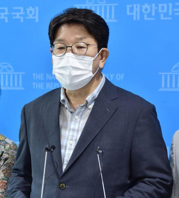 ▲ 국민의힘 권성동 의원이 지난 26일 국회 소통관에서 당외 대선후보 입당 촉구 기자회견을 마치고 취재진 질문에 답변하고 있다. [뉴시스]