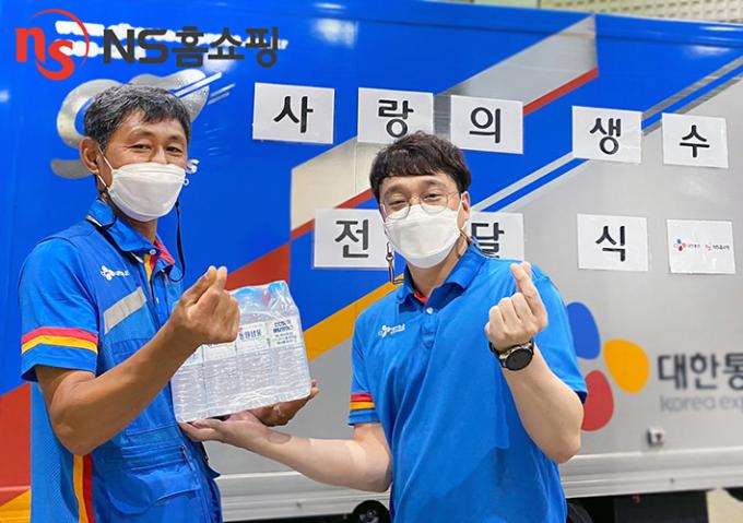 ▲ NS홈쇼핑이 택배기사의 폭염 극복을 위한 '사랑의 생수' 나눔 행사를 진행했다. [NS홈쇼핑 제공]