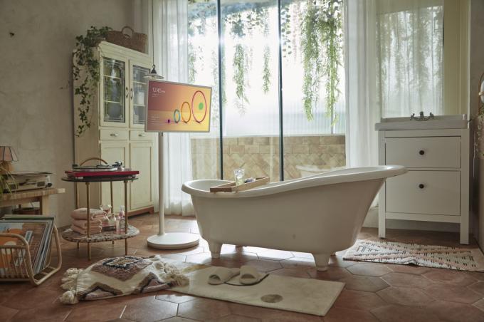 LG 스탠바이미는 기존 TV와는 차별화된 무빙스탠드 디자인을 적용한 새로운 폼팩터 제품이다. 무빙 휠로 침실, 부엌, 서재 등 원하는 곳에 옮겨가며 사용할 수 있으며 전원 연결 없이도 최장 3시간 동안 사용 가능하다.