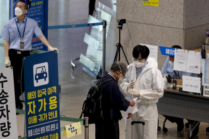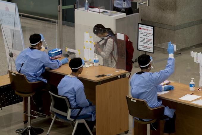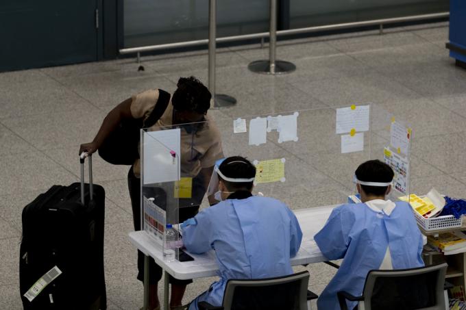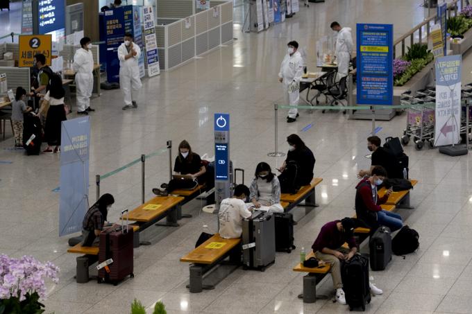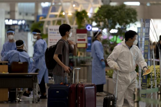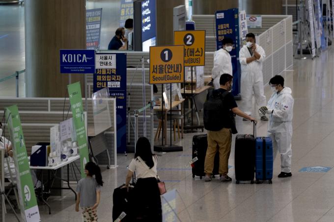 5일 인천국제공항 제1터미널 입국장에서 방역 관계자들이 입국자 안내를 하고 있다. 중앙방역대책본부에 따르면 현재까지 국내에서 '델타 플러스' 변이가 확인된 확진자는 2명으로 1명은 해외 여행력이 없는 40대 남성이고, 다른 1명은 해외에서 입국한 50대 남성이다.