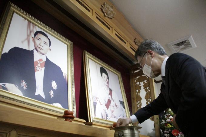 그는 박 전 대통령 생가 옆 추모관을 참배한 뒤 "국가의 미래를 바라보는 혜안으로 대한민국 발전의 기초를 든든히 만드신 박정희 대통령님의 애국·애민 정신을 더욱 발전시키겠습니다"라고 방명록을 작성했다.
