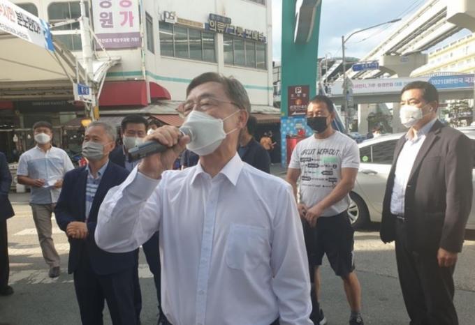 선거법 위반 논란 시발점은 지난 6일 최 전 원장이 방문한 대구 달성로 서문시장에서다. 그는 당시 서문시장 입구에서 측근이 건네 준 마이크를 받아 "여러분 많이 힘드시죠. 이 정권에서 힘드셨죠"라며 "저 최재형이 정권교체 이뤄내겠습니다. 믿어주십시오"라고 연설했던 게 논란을 불러일으켰다.