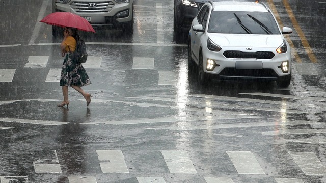 대기 불안정 영향으로 시간당 30~50mm의 강한 소나기도 전망된다. 경남내륙 일부 지역에선 최대 70mm 달하는 비가 내릴 것으로 보인다.