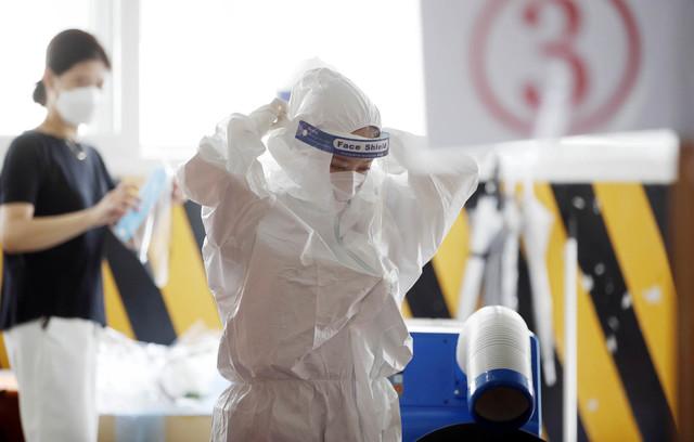 ▲ 11일 광주 북구선별진료소에서 보건소 의료진이 검사 준비를 하고 있다. [광주 북구 제공]