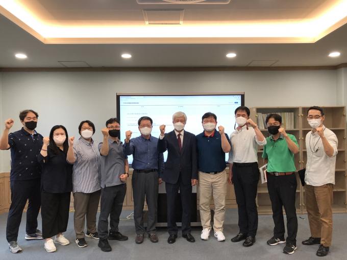 ▲ 반선섭 강릉원주대 총장(왼쪽 여섯 번째)과 임직원들이 17일 교육부가 발표한 제3주기 대학기본역량진단 평가에서 '일반재정지원대학'으로 선정되자 파이팅을 외치고 있다.[강릉원주대 제공]