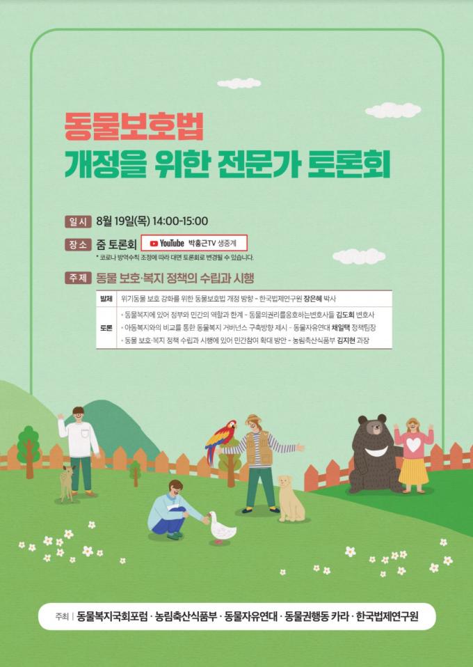 ▲19일 열린 '동물보호법 개정을 위한 전문가 토론회' 포스터 [박홍근 의원실 제공]