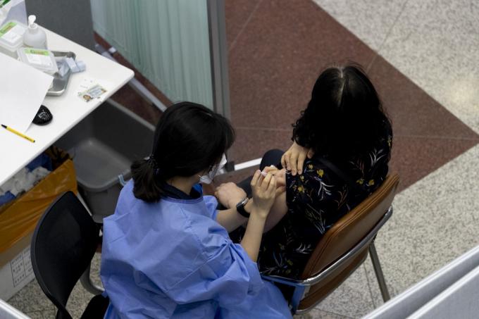 ▲서울 은평구 코로나19 예방접종센터에서 한 시민이 백신을 맞고 있다. [문재원 기자]