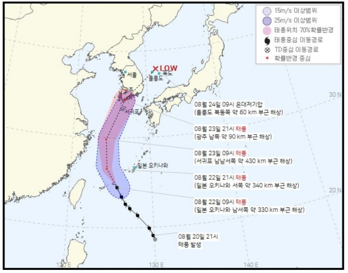 기상청은 "해양의 수온이 높고 태풍의 크기가 작아 태풍이 유지되기 좋은 조건이 만들어졌다"며 예보 변경 이유를 설명했다.