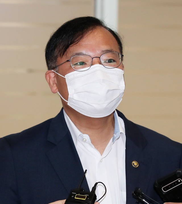 ▲ 강도태 보건복지부 2차관이 지난 13일 오전 인천국제공항 2터미널에서 미국 바이오 기업 모더나사에 조속한 코로나19 백신 공급을 촉구하기 위해 미국으로 출국하기 전 취재진과 질의응답을 하고 있다. [뉴시스]