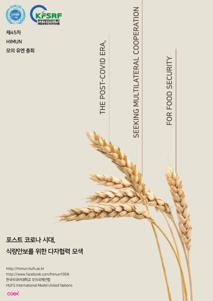 이번 행사를 총괄하고 있는 김예슬 사무총장(한국외대 정치외교학과)은 "전 세계를 강타한 코로나19의 위기 속에 제기된 수많은 국제 이슈 중 시의적절한 이슈가 무엇일까 고민했다"면서 "식량 위기가 심화될 코로나19 이후 식량안보는 더욱 시급한 문제로 떠오를 것이고, 세계적 위기 상황에서 식량 문제에 관심을 가져야 한다"고 말했다.